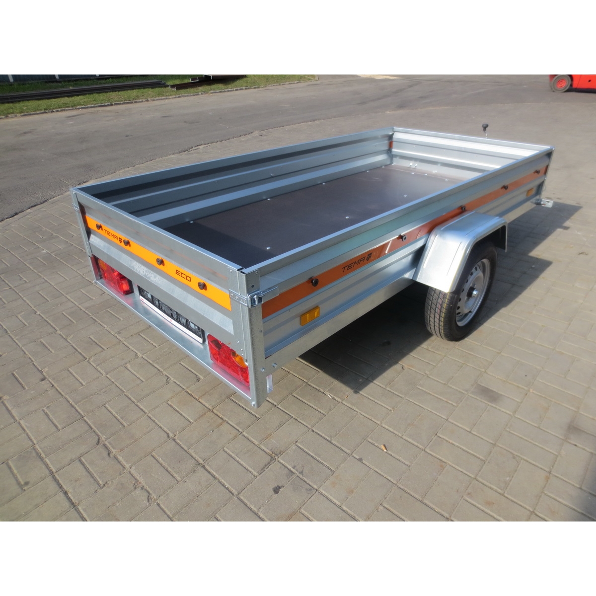 Wytrzymałość konstrukcji przyczepki została zapewniona poprzez użycie wysokiej jakości komponentów oraz ocynkowanie elementów stalowych zapobiegające korozji. Powierzchnia transportowa wykonana jest ze sklejki wodoodpornej i antypoślizgowej o grubości 9 mm. Otwierana burta tylna umożliwia komfortowy załadunek przyczepy.