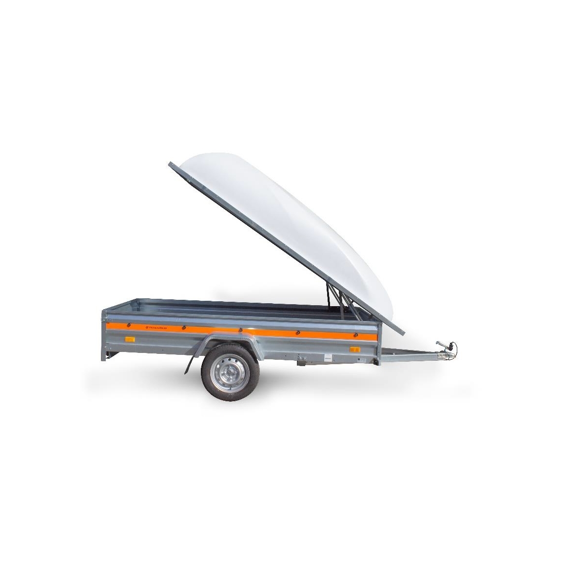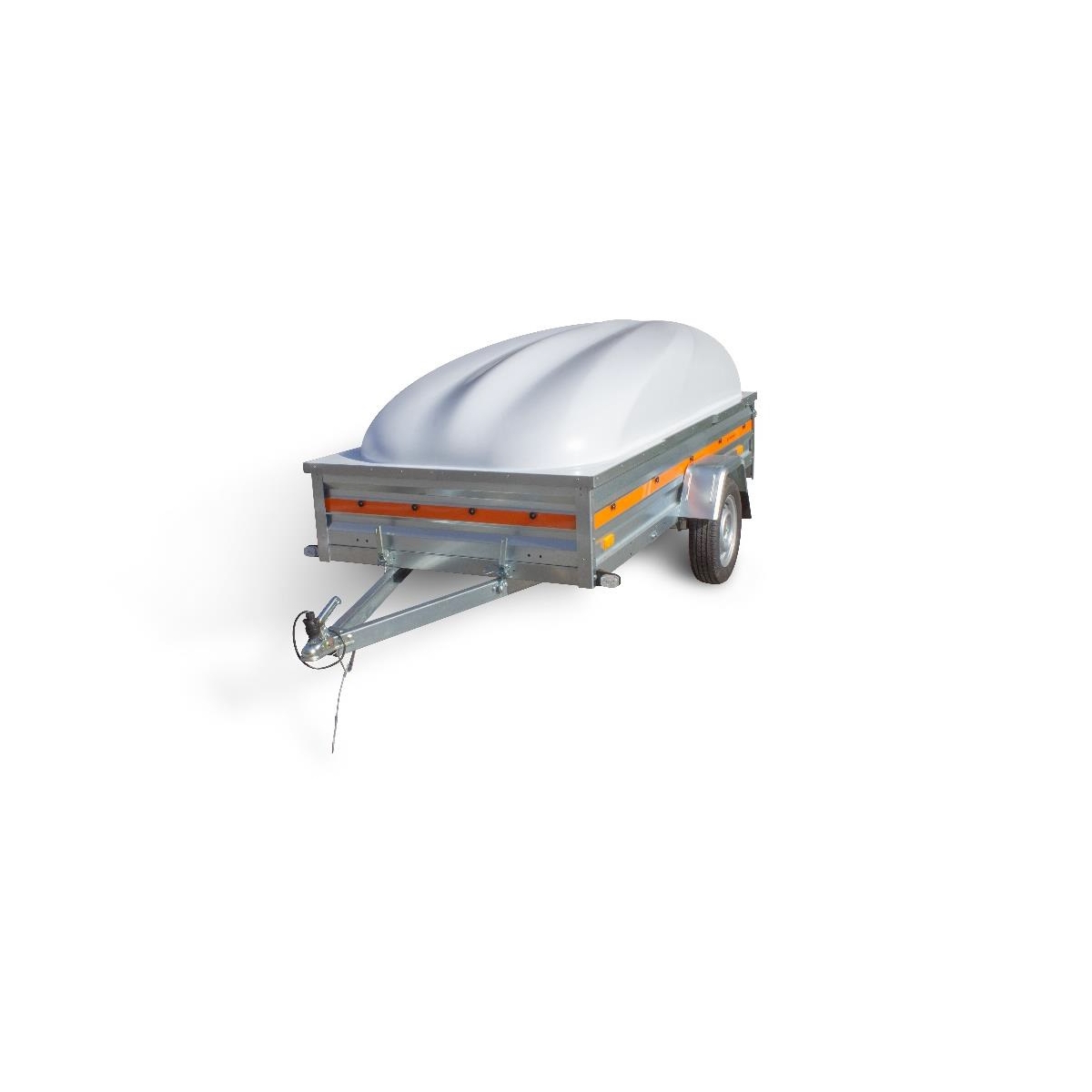 Wytrzymałość konstrukcji przyczepki została zapewniona poprzez użycie wysokiej jakości komponentów oraz ocynkowanie elementów stalowych zapobiegające korozji. Powierzchnia transportowa wykonana jest ze sklejki wodoodpornej i antypoślizgowej o grubości 9 mm. Otwierana burta tylna umożliwia komfortowy załadunek przyczepy.