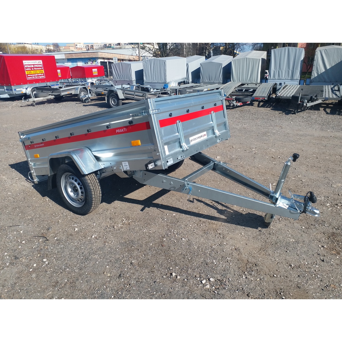 Przyczepy samochodowe serii PRAKTI charakteryzują się uchylnym dyszlem oraz wysoką 40 centymetrową burtą. Przyczepę PRAKTI możemy kiprować co pozwoli na łatwy rozładunek np. sypkiego towaru. Pustą przyczepę możemy przechowywać postawiona na tylnej burcie oszczędzając miejsce w garażu. Przyczepy PRAKTI występują na zawieszeniu opartym o osie skrętne lub doskonałym zawieszeniu na niezależnych wahaczach