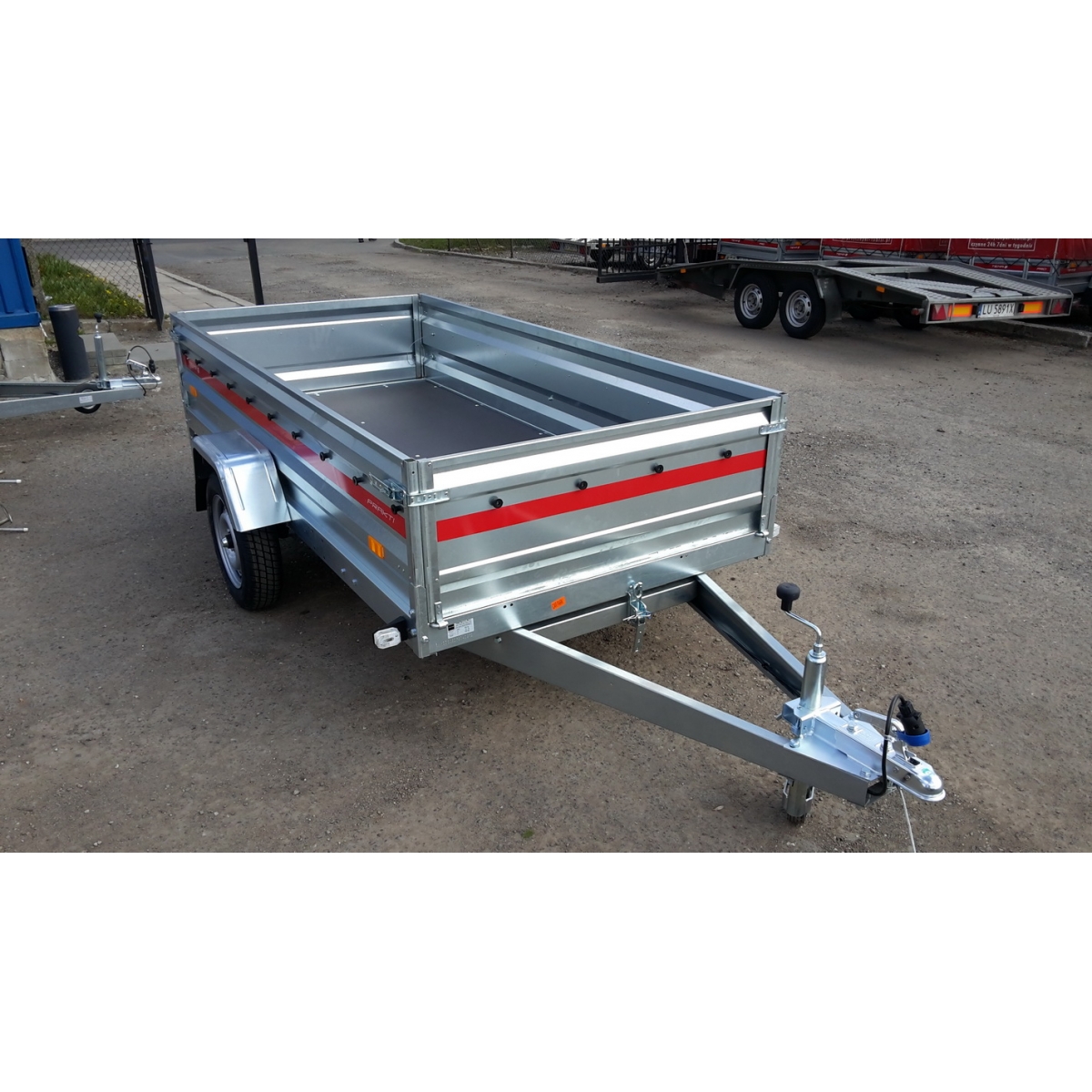Przyczepy samochodowe serii PRAKTI charakteryzują się uchylnym dyszlem oraz wysoką 40 centymetrową burtą. Przyczepę PRAKTI możemy kiprować co pozwoli na łatwy rozładunek np. sypkiego towaru. Pustą przyczepę możemy przechowywać postawiona na tylnej burcie oszczędzając miejsce w garażu.
