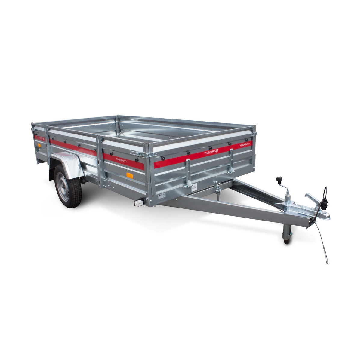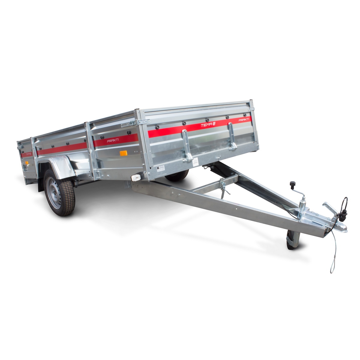 Przyczepy samochodowe serii PRAKTI charakteryzują się uchylnym dyszlem oraz wysoką 40 centymetrową burtą. Przyczepę PRAKTI możemy kiprować co pozwoli na łatwy rozładunek np. sypkiego towaru. Pustą przyczepę możemy przechowywać postawiona na tylnej burcie oszczędzając miejsce w garażu. Przyczepy PRAKTI występują na zawieszeniu opartym o osie skrętne lub doskonałym zawieszeniu na niezależnych wahaczach