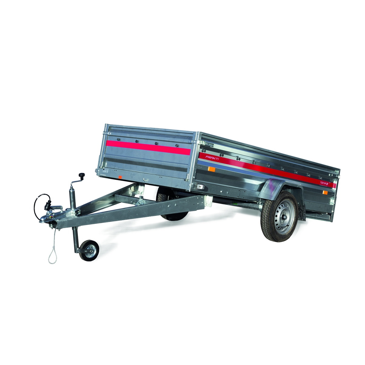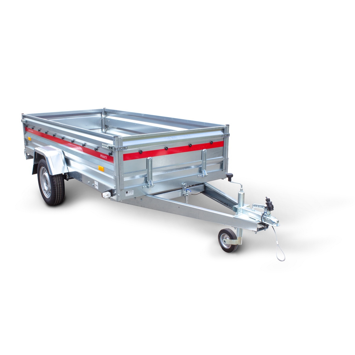 Przyczepy samochodowe serii PRAKTI charakteryzują się uchylnym dyszlem oraz wysoką 40 centymetrową burtą. Przyczepę PRAKTI możemy kiprować co pozwoli na łatwy rozładunek np. sypkiego towaru. Pustą przyczepę możemy przechowywać postawiona na tylnej burcie oszczędzając miejsce w garażu.