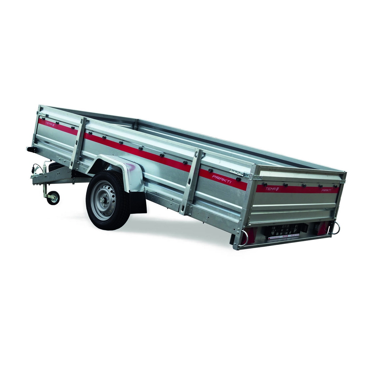 Przyczepy samochodowe serii PRAKTI charakteryzują się uchylnym dyszlem oraz wysoką 46 centymetrową burtą. Przyczepę PRAKTI możemy kiprować co pozwoli na łatwy rozładunek np. sypkiego towaru. Pustą przyczepę możemy przechowywać postawiona na tylnej burcie oszczędzając miejsce w garażu.