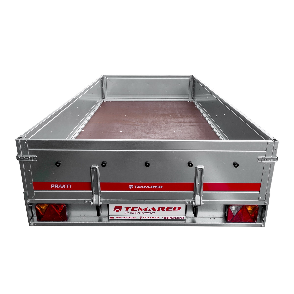Przyczepy samochodowe serii PRAKTI charakteryzują się uchylnym dyszlem oraz wysoką 40 centymetrową burtą. Przyczepę PRAKTI możemy kiprować co pozwoli na łatwy rozładunek np. sypkiego towaru. Pustą przyczepę możemy przechowywać postawiona na tylnej burcie oszczędzając miejsce w garażu. Przyczepy PRAKTI występują na zawieszeniu opartym o osie skrętne lub doskonałym zawieszeniu na niezależnych wahaczach