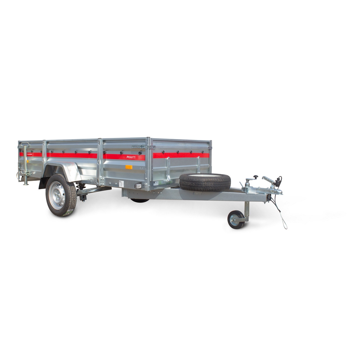 Przyczepy samochodowe serii PRAKTI charakteryzują się uchylnym dyszlem oraz wysoką 40 centymetrową burtą. Przyczepę PRAKTI możemy kiprować co pozwoli na łatwy rozładunek np. sypkiego towaru. Pustą przyczepę możemy przechowywać postawiona na tylnej burcie oszczędzając miejsce w garażu. Przyczepy PRAKTI występują na zawieszeniu opartym o osie skrętne lub doskonałym zawieszeniu na niezależnych wahaczach